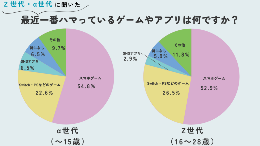 今回は、ゲームに関するアンケートの結果をもとに、Z世代・α世代が最近ハマっているゲームやアプリについて皆さんにご紹介します。
