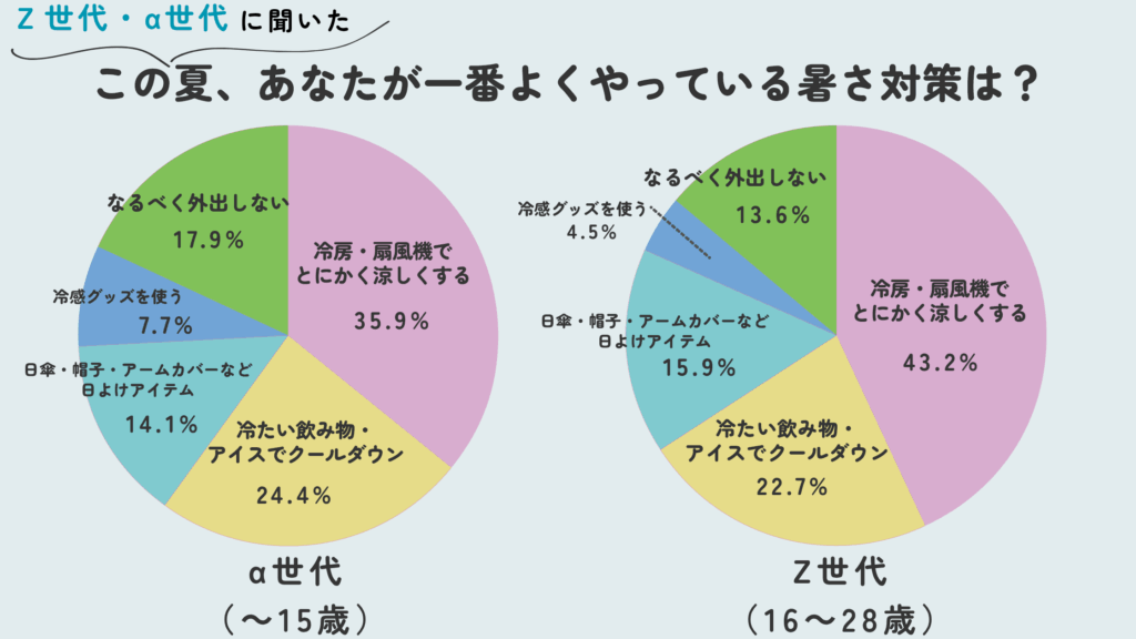 今回は、暑さ対策に関するアンケートの結果をもとに、Z世代・α世代が実践したイマドキの暑さ対策について皆さんにご紹介します。