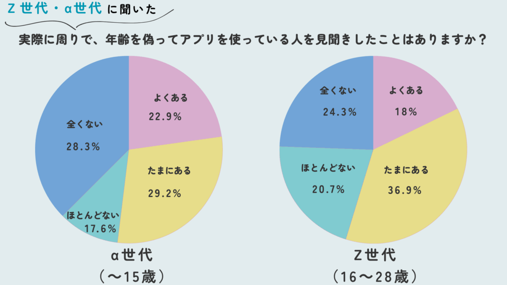 年齢を偽ってアプリを使っているひとを見聞きしたことがあるか