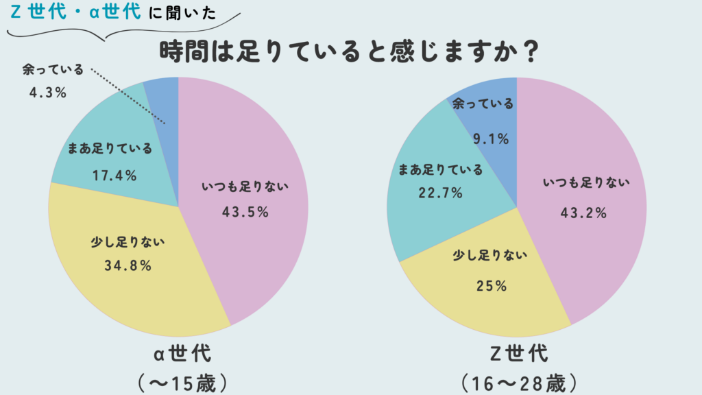 今回は、時間の使い方に関するアンケートの結果をもとに、Z世代・α世代が時間についてどのように考えているのかを皆さんにご紹介します。